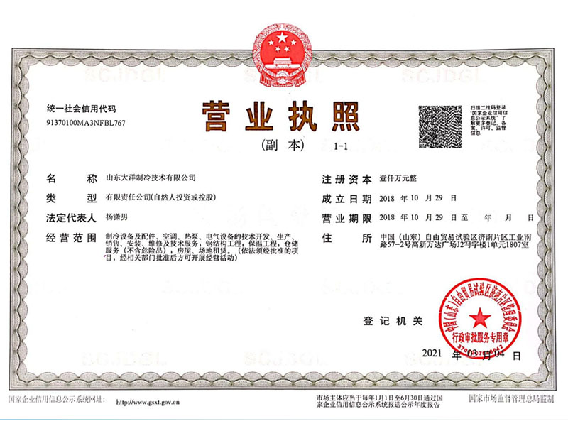 大洋制冷創(chuàng)建于2008年,注冊資本2000萬人民幣,專注制冷行業(yè)10余年,是以冷鏈物流、屠宰、食品深加工、果蔬保鮮、醫(yī)藥化工等為主導的跨行業(yè)公司。公司提供專業(yè)的工程策劃方案、項目設計、成套設備供應、安裝與調試、維護與維修、技術咨詢、操作 維修人員技術培訓。 公司已與央企華潤集團、中國核建集團、水發(fā)集團、政府部門農(nóng)業(yè)局、新西蘭跨國公司環(huán)球園藝、阿根廷Biogenesis Bago生物等在行業(yè)內有代表性的1000多家公司及政府相關部門達成合作協(xié)議。 旗下在山東、浙江、上海、陜西、甘肅、新疆等地區(qū)分布有多家公司,業(yè)務已覆蓋華東、華中、華北、東北、西南、西北地區(qū)。